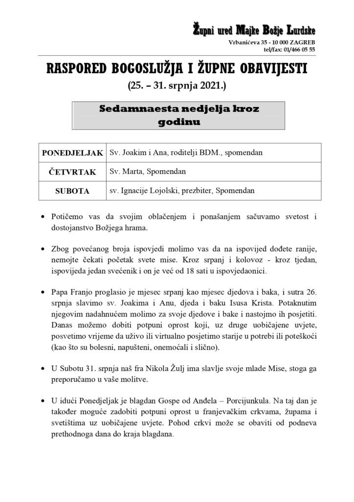 • Raspored svetih misa